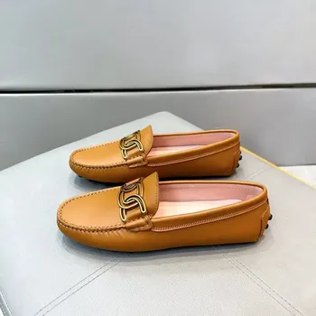 2025 donna in stile britannico confortevole cavo piatto in metallo con frange con fibbia in maglia scarpe estive con stampa tendenza moda