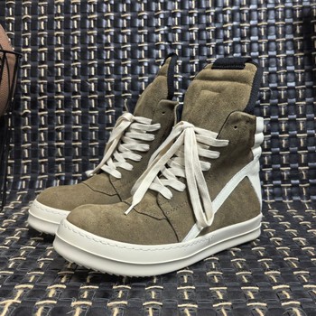 RO tam giác Ngược Da Lộn Giày thể thao hàng đầu cao giản dị da chính hãng tăng chiều cao màu sữa duy nhất phong cách đi bộ